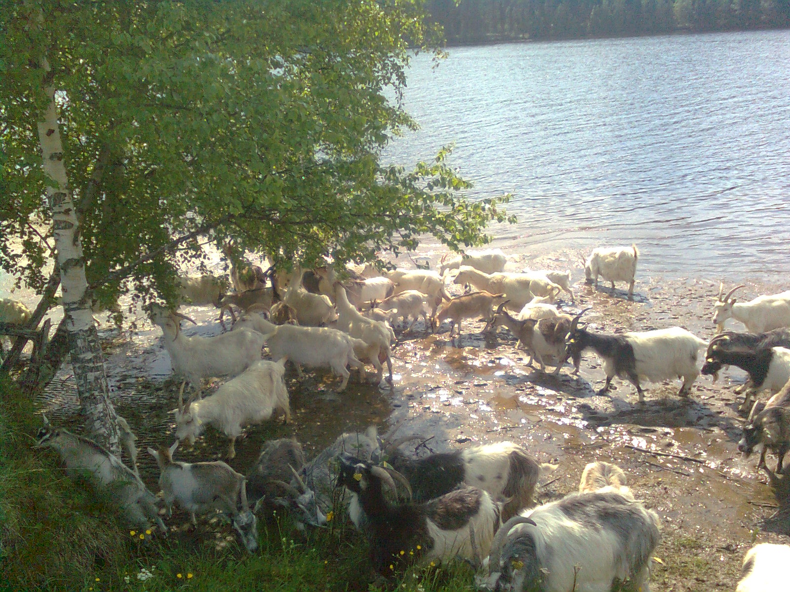 I grannens backe har det vuxit upp en massa smårönnar. Getterna älskar det och han ville ha bort dom så vi gjorde en hage där.